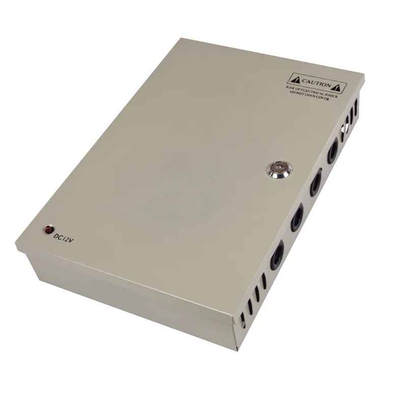 Захранване за видеонаблюдение 12V 20A 18 канала със защита, метална кутия